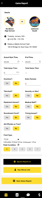 While viewing the Game Details, tap Enter Game Report or Enter Evaluation, depending on what is required.