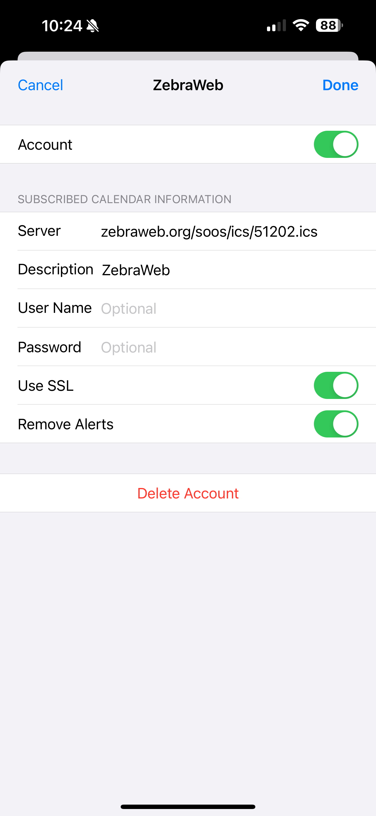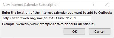 - Paste your ZebraWeb iCal URL from the email.