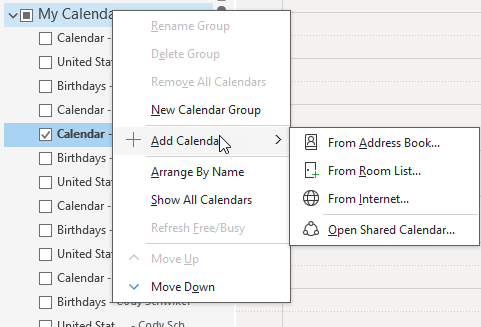 - In Outlook, go to the bottom of the page and Right click on My Calendar