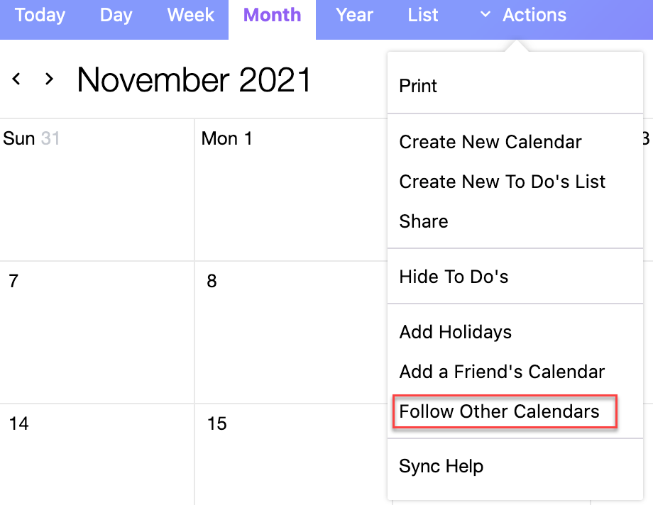 - Select the Follow Other Calendars option.