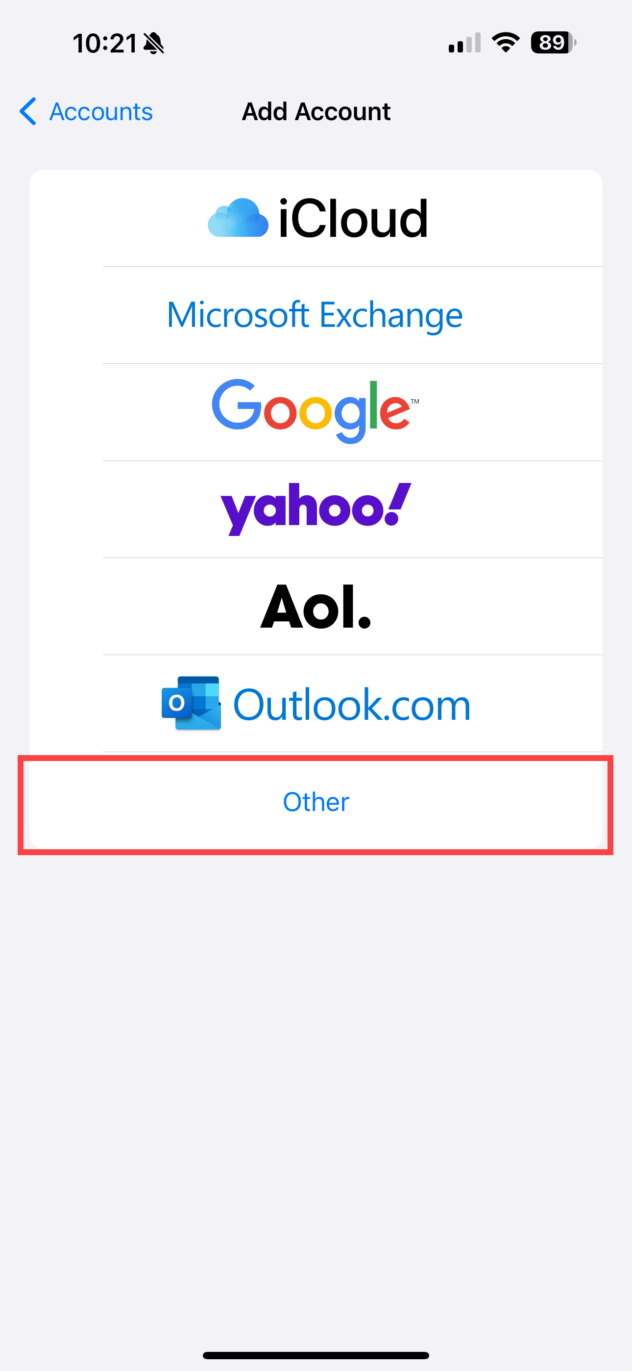 - Select Accounts and then “Add Account”.